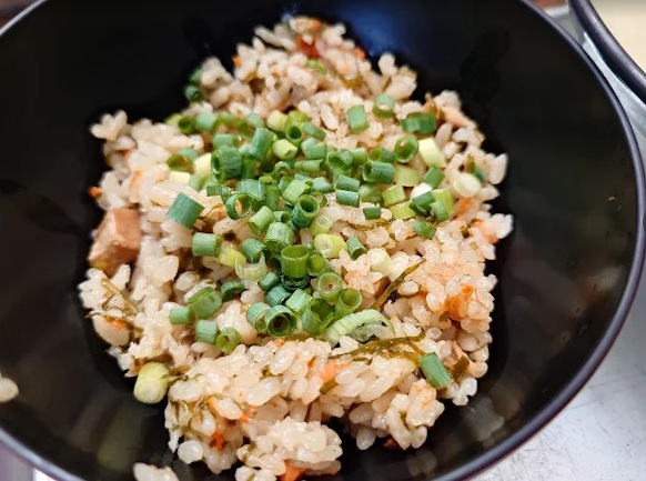 沖縄そばの最強相棒といえば「じゅーしー」。 こちらのじゅーしーは、出汁がしっかり染みた優しい味わい。そばのスープと一緒に流し込むと、もうお箸が止まりません!