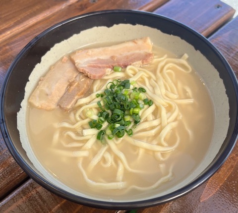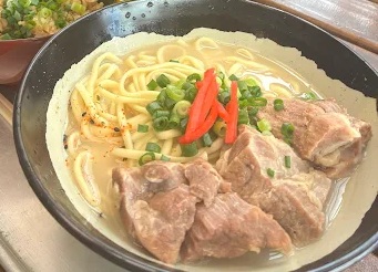 まさに「オールスター」!軟骨ソーキ、本ソーキ、三枚肉がこれでもかとトッピングされた贅沢な一杯です。肉の旨みがスープに溶け出し、食べ応えは満点。海上がりで腹ペコのサーファーたちがこぞって注文するのも納得のボリュームです。